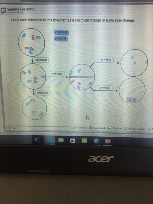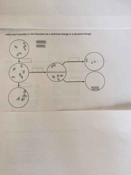 Label each transition in this flow chart as a chemical change ... 6 Sept 2017 — Expert-verified answer. question ; transitions 1, 2 and 4 are ; chemical changes, whereas ; transitions 3 and 5 are ; physical changes.2 answers · Top answer: Referring to the attached picture, transitions 1, 2 and 4 are chemical changes, whereas transitions ...