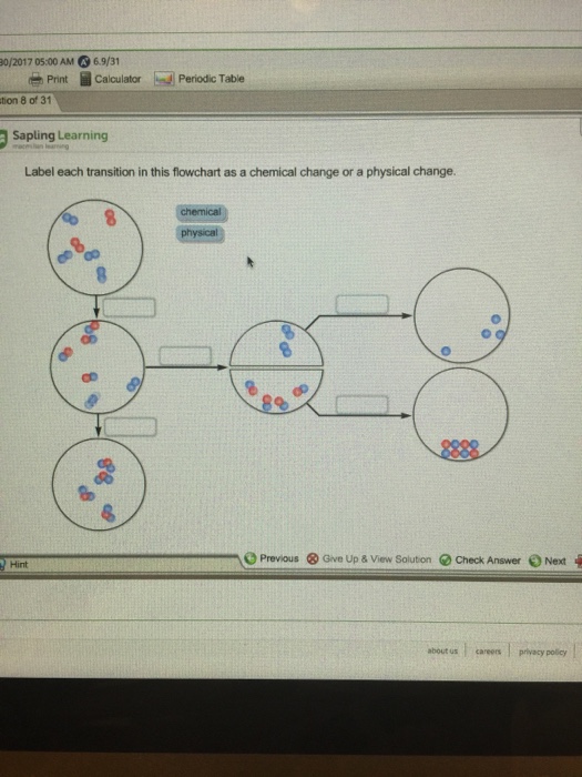 Label each transition in this flowchart as a chemical change answer. Answered: Identify each transition in this… | bartleby Solution for Identify each transition in this flowchart as a chemical change or a physical change. chemical chemical physical chemical chemical Answer Bank…1 answer · Top answer: Step 1 Physical change:This type of change involves the change in the physical state of the substance and no new substance is formed.It is a reversible ...Missing: label | Must include: label Steps to Naming Ionic and Covalent Compounds - Owlcation Steps to Naming Covalent Compounds. First, identify the elements present. Second, look at the subscript of each element to determine which prefix to use. (If an element does not have a prefix, assume that the subscript is "1." Third, apply the above naming scheme. (Note: If the prefix of the first element would be "mono-", it is not needed.)TIP!: Get used to what part of an element's ... The first stage of the change process should be: A ... - Soetrust The first stage of the change process should be: A. Maintaining the change. B. Planning and implementing the change. C. Defining and promoting the change. D. Engaging people in the change. THIS IS THE BEST ANSWER 👇 Defining and promoting change should be the first step in the change process. study.com › learn › analytical-chemistry-questionsAnalytical Chemistry Questions and Answers | Study.com Each SO2 molecule has a mass of 64, relative to carbon at 12, and the average for air m... View Answer How many moles of NaF are in 54.8 grams of a 45.5% by mass NaF solution?