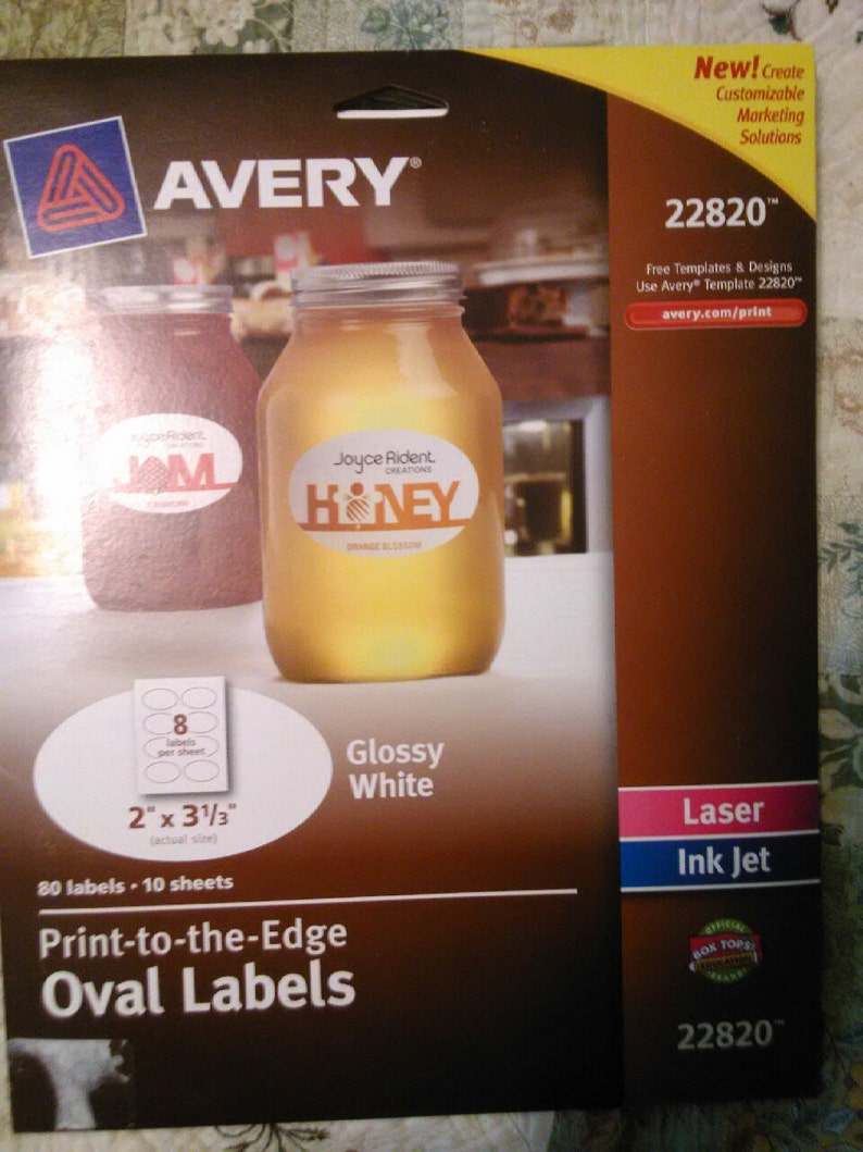 Amazon.com: Avery Print-To-The-Edge Glossy Oval Labels, True Print, 2 ... Just go to the Avery website and follow the links to Design and Print. Enter your label number -- for these labels it's 22820 -- and then search for ideas with keywords like "honey label" and you'll see many attractive options that you can customize further. Printing is about as foolproof as it gets. Just remember to follow the instructions.