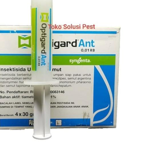 PDF OPTIGARD Ant Gel Bait Insecticide - pestweb.com Apply approximately 5 mm length of gel (~0.1 g) for each spot with a minimum of 1-3 spots per m2in locations where ants are observed actively foraging, entering the structure or next to ant trails found close to the structure. Apply in cracks, crevices, corners, holes and out of the way places.