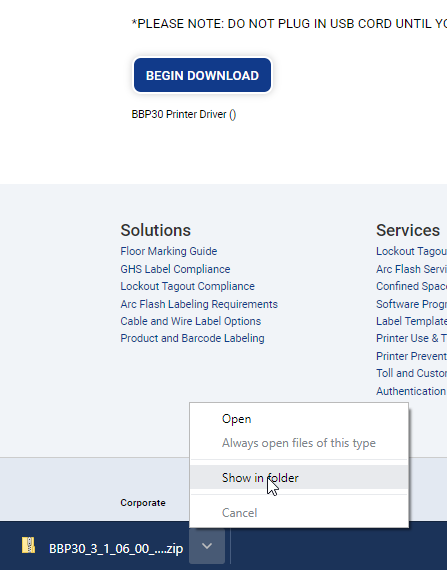 BMP71 Firmware Upgrade 1.12 | Brady.co.uk Download Instructions 1) Click on Begin download button, Save the file to your desktop. 2) Right click on the downloaded file and select Extract All. Choose the extraction location to be your desktop where a folder will be created with the extracted files. 4) Double click on the created folder and then double click the Setup icon.