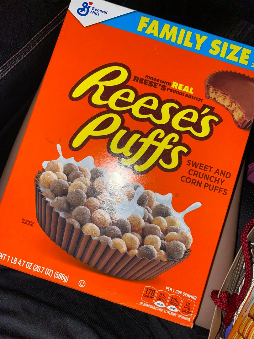 General Mills Family Size Reeses Puffs Cereal - 19.7oz : Target One 19.7 oz Family Size box of General Mills REESE'S PUFFS Chocolatey Peanut Butter Cereal. The perfect combination of chocolate and peanut butter flavor in every crunchy bite. Sweet and crunchy corn puffs made with real REESE'S peanut butter. Kids breakfast cereal that provides 15 g of whole grains per serving (at least 48 g recommended daily)