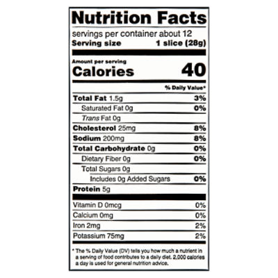 Calories in Turkey Bacon and Nutrition Facts - FatSecret Aug 21, 2007 ... Turkey Bacon ; Calories. 31 ; Fat. 2.23 g ; Carbs. 0.25 g ; Protein. 2.37 g ; Serving Size, 1 thin slice (yield after cooking) ... Nutritional Information, Diet Info and Calories in Turkey Bacon - Fitbit Nutritional Information, Diet Info and Calories in. Turkey Bacon ; Vitamin A 0% · Vitamin C 0% ; Calcium 4% · Iron 8% ; Magnesium 5% · Phosphorus 20% ; Zinc 17% ... Original Turkey Bacon - Butterball Nutritional Facts ; Ingredients. Mechanically Separated Turkey, Turkey, Water, Salt, Sugar, Contains 2% or less of Canola Oil, Sunflower Oil, Natural Flavor, ... Jennie-O Turkey Bacon - Shop Meat at H-E-B Jennie-O Turkey Bacon ; Trans Fat, 0g ; Cholesterol, 10mg, 3% ; Sodium, 130mg, 5% ; Total Carbohydrate, 0g, 0% ...