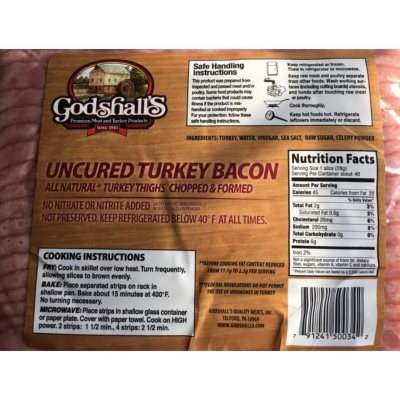 Nutrition Facts for Oscar Mayer Turkey Bacon • MyFoodDiary® Nutrition Facts ; Fat 73.8% ; Carbs 0.0% ; Protein 26.2% ... Is Turkey Bacon Healthy? Nutrition, Calories and More Aug 15, 2022 · Turkey bacon can be a good fit for some people, especially those with special dietary needs. Fewer calories and fat than pork bacon. Turkey bacon has roughly 25% fewer calories and 35% less ... Turkey: Nutrition, benefits, and diet - Medical News Today Feb 22, 2018 · For Thanksgiving, 51 million turkeys will be consumed across the country with total spending for the holiday at around $2,375,000,000. So, what are the health benefits of turkey? Turkey Bacon Nutrition Facts and Health Benefits - Verywell Fit Jun 22, 2020 · Cooking with turkey bacon may involve a bit of a learning curve if you’ve only ever used the traditional variety of pork bacon. While it can easily stand in for pork bacon in many recipes, don’t expect to be a perfect substitute. Because of its lower fat content, turkey bacon may not get as crispy as pork, and may not crumble as easily.
