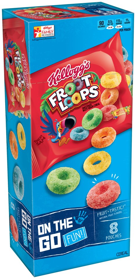 Kellogg's® Froot Loops® Cereal - SmartLabel™ Froot Loops® Kellogg's® Froot Loops® Cereal. 26 oz. 00038000937675. Nutrition . Ingredients . Allergens . Features & Benefits . Company, Brand & Sustainability . 150. Calories. 0.5 g. Sat Fat. 210 mg. Sodium. 12 g. Sugar. Nutrition Facts. Servings Per Container About 18. Serving Size 1 1/3 Cup (39 g) Amount Per Serving Cereal with 3/4 cup ... how many fruit loops are in 1 cup - setonhotelny.com Calories % Daily Value* 2%. Show full nutrition information Fruit Loops Cereal & Milk Bars (1 serving) Calories: 100, Fat: 3g, Carbs: 16g, Protein: 2g. It says 1 cup = (29g / 1 oz) = 120 Calories. 0% Per 1 cup serving: 110 calories; 0.5 g sat fat (3% DV); 135 mg sodium (6% DV); 12 g sugars. Froot Loops Cereal Milk not included. Froot Loops Gummies, Made With Real Fruit Juice, N...: calories ... For women: 100 calories (25 grams, 6 tsp per day) For men: 150 calories (37 grams, 9 tsp per day) The FDA is more "generous", the Daily Value for added sugars is 200 calories (50 grams, 12 tsp per day). Here at Fooducate, we suggest sticking to the stricter option (only 25 grams per day for women, 37 grams for men). More info Froot Loops vs. Healthy Cereals | livestrong Kellogg's Froot Loops are 41 percent sugar by weight, according to the Harvard School of Public Health. Women should limit their sugar intake to 6 tsp., or 24 g, per day and men should limit it to 9 tsp, or 36 g, per day. One serving of Froot Loops has 3 tsp., or 12 g, of sugar. High-sugar foods cause blood sugar and insulin levels to spike.