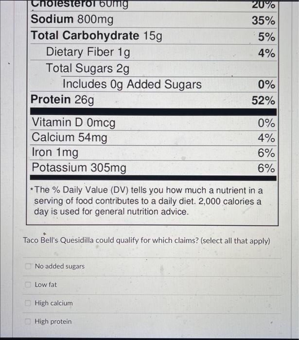 Taco bell nutrition info. Taco Bell Nutrition and Calories - Menus With Price View Taco Bell nutrition facts to see how many calories, fat, sugars, protein and carbs are in Taco Bell menu. ... Taco Bell Nutrition Facts. Food Item Calories Protein (g) Total Fat (g) 7-Layer Burrito : 430: 14: 16: Airhead® Mystery Freeze™ (16 oz) 170: 0: 0: Airhead® Mystery Freeze™ (20 oz) 210: 0: 0: Deluxe Build Your Own Cravings Box - Order Online | Taco Bell® Try our Deluxe Build Your Own Cravings Box - choose one Specialty: a Grilled Cheese Burrito, Doritos® Cheesy Gordita Crunch, Steak Chalupa Supreme, or Burrito Supreme®. Choose two Classics: a Beefy Melt Burrito, Beefy 5-Layer Burrito, Bean Burrito, Doritos® Locos Tacos, Soft Taco Supreme®, or Crunchy Taco Supreme®. Choose one Side: a Cheesy Roll Up, chips & nacho cheese sauce, or ... › how-to-eat-healthy-at-tacoTaco Bell Nutrition Facts: What to Order & Avoid - Verywell Fit Taco Bell's Soft Breakfast Taco (Egg and Cheese) provides 170 calories, 9 g total fat (of which 5 g is saturated fat), 15 g carbohydrate, 7 g protein, and 330 mg sodium. Skip the cheese to save 25 calories. Instead, add a side of pico de gallo (5 calories), bringing the total calories for your customized breakfast taco to 150. Taco Bell Nutrition Facts. Calories, carbs, fat, sodium ... - MyFoodDiary Taco Bell ; Taco BellGrilled Steak Soft Taco. 1 taco (106.3g). Nutrition Facts. 200 calories. Log food ; Taco BellFresco Soft Taco w/ Beef. 1 taco (106g).
