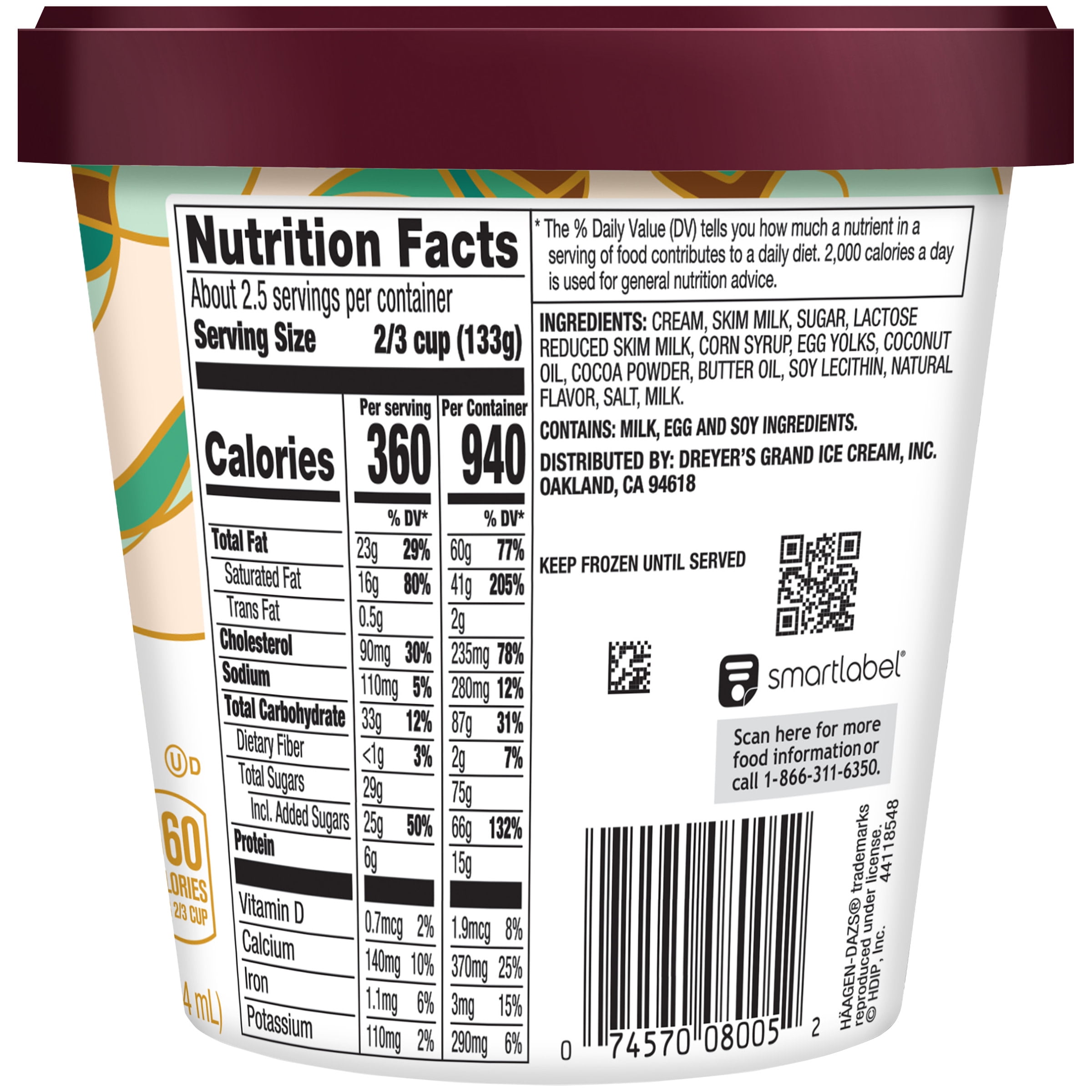 Haagen dazs nutrition label