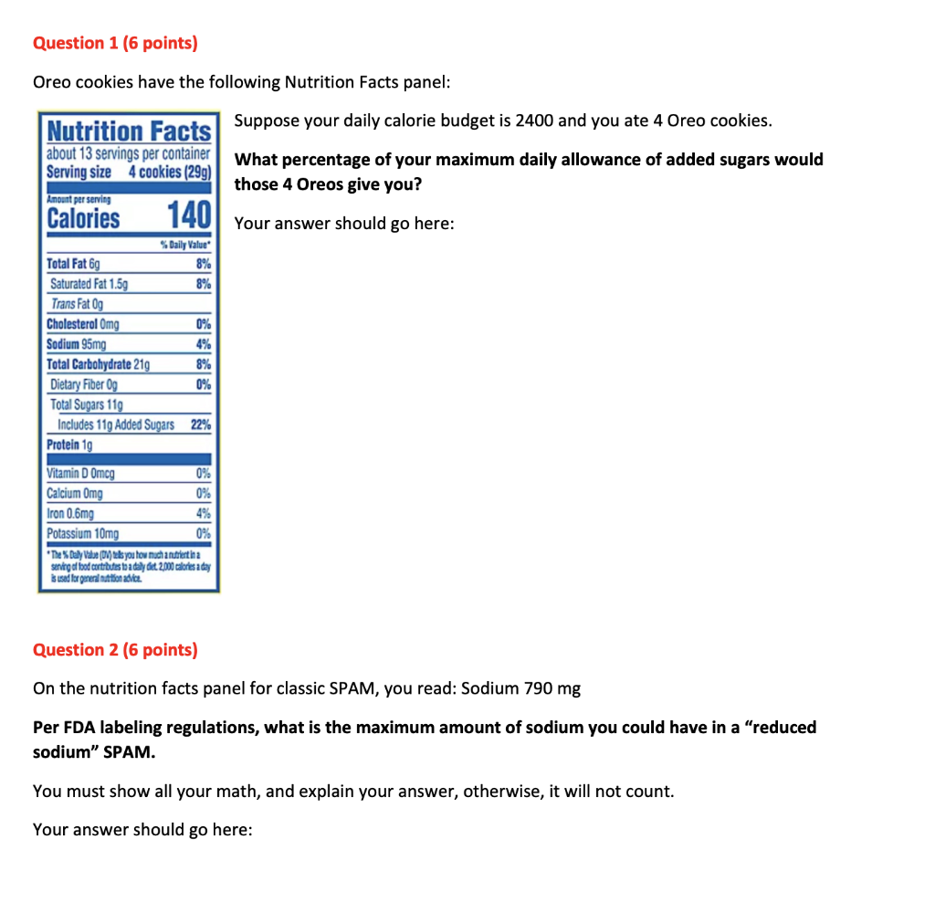 Oreo cookie nutrition label